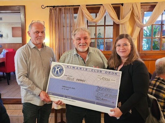 Am 5. November überreichte Roland Cherpillod, Präsident des Kiwanis Club Oron, den Scheck über 1'000 Franken an Daniel Ruch, Präsident der Winterhilfe Waadt, sowie an Marine Pichon, die Sekretärin.